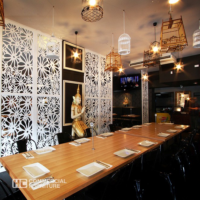 Sugar Cane Restaurant Green Peppercorn Restaurant Location: Fairfield Project Feature: Custom made MDF Screens, white Bistro chairs and table top and bases.